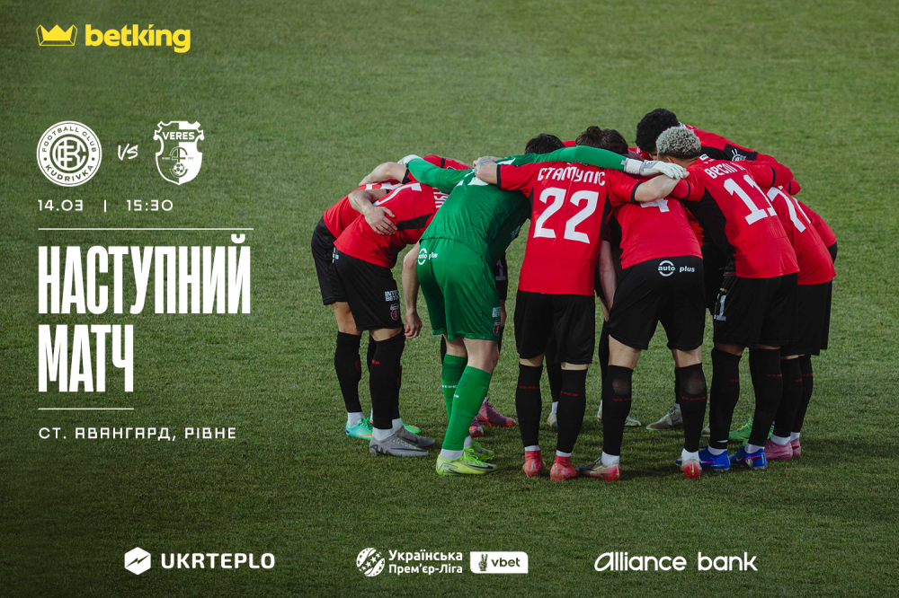Наступним суперником рівненського Вереса у чемпіонаті VBET Української Прем'єр-ліги стане Кудрівка. Гра 14-го березня буде для червоно-чорних номінально виїзною, але відбудеться на Авангарді у Рівному і розпочнеться о 15:30.